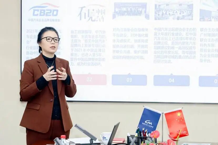 中国汽车工业协会副秘书长、CB20主理人柳燕做协会品牌服务工作和CB20平台运行回顾介绍