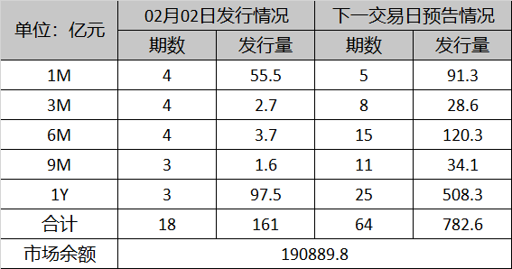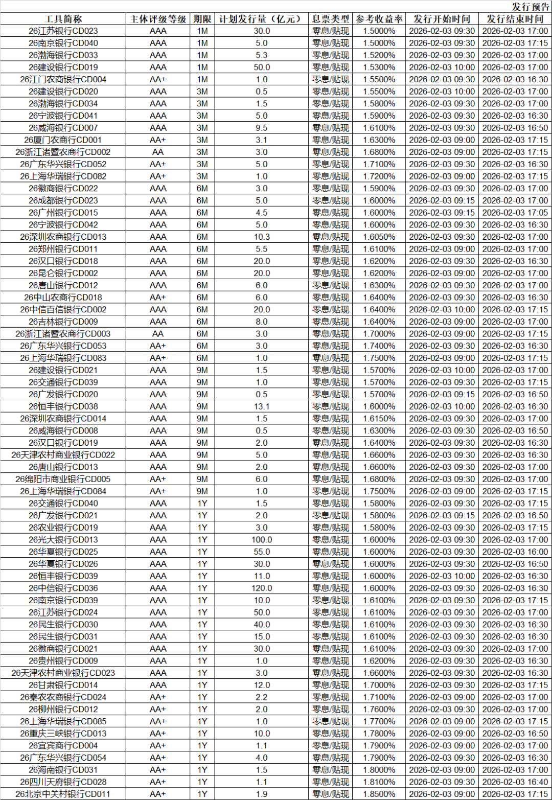 同业存单发行18只,发行量161.0亿元,较前日减少187.3亿元。
